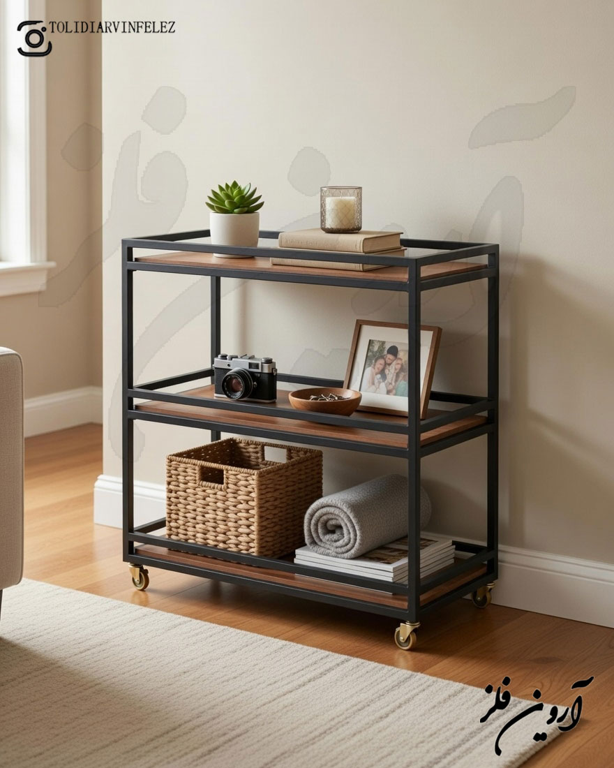 این محصول علاوه بر کاربرد به عنوان استند، میتواند به عنوان یک شلف چوب و فلز نیز مورد استفاده قرار گیرد. طراحی طبقات بهگونهای است که امکان چیدمان منظم وسایل را فراهم میکند و دسترسی به اقلام مختلف را آسان میسازد. فاصله مناسب بین طبقات، امکان قرار دادن وسایل با ارتفاعهای مختلف را ایجاد کرده و انعطافپذیری بالایی در استفاده ارائه میدهد.
